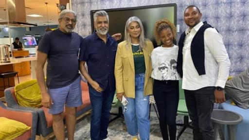 Panellists Robin Sewlal, Gavin Koppel (Gavin Kay), Katie Mohamed, Kanthen Pillay and FM intern, Erika Mathebula, after the heated panel discussion about the future of radio in South Africa.